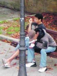 B.D.- Los “nuevos ingleses” al natural, Romeo y Julieta a la hora del “tea time” a orillas del Támesis. O tal vez: “Bienvenidos al zoológico”… Podría ser un reportaje de Aminal Discovery, pero es algo más cercano. Es el ritual de apareamiento africano en los suburbios de Londres, el cortejo preliminar, el coqueteo previo a la cópula… ¡Bendita inmigración, exhaltante multicultura! ¡Eramos tan pobres, tan tristes, tan rancios, antes de esta venturosa diversidad!